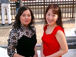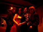 超スリットの入った真っ赤なドレスのなちさんと、黒のロングドレスの私がべったべったと