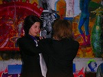この摩訶不思議なペインティングの壁面をバックにまずは、かずきさんとヴィッちゃんさんの